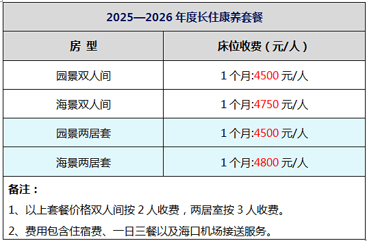(1)以上价格7天包含一日三餐,30天仅包含早餐和晚餐。